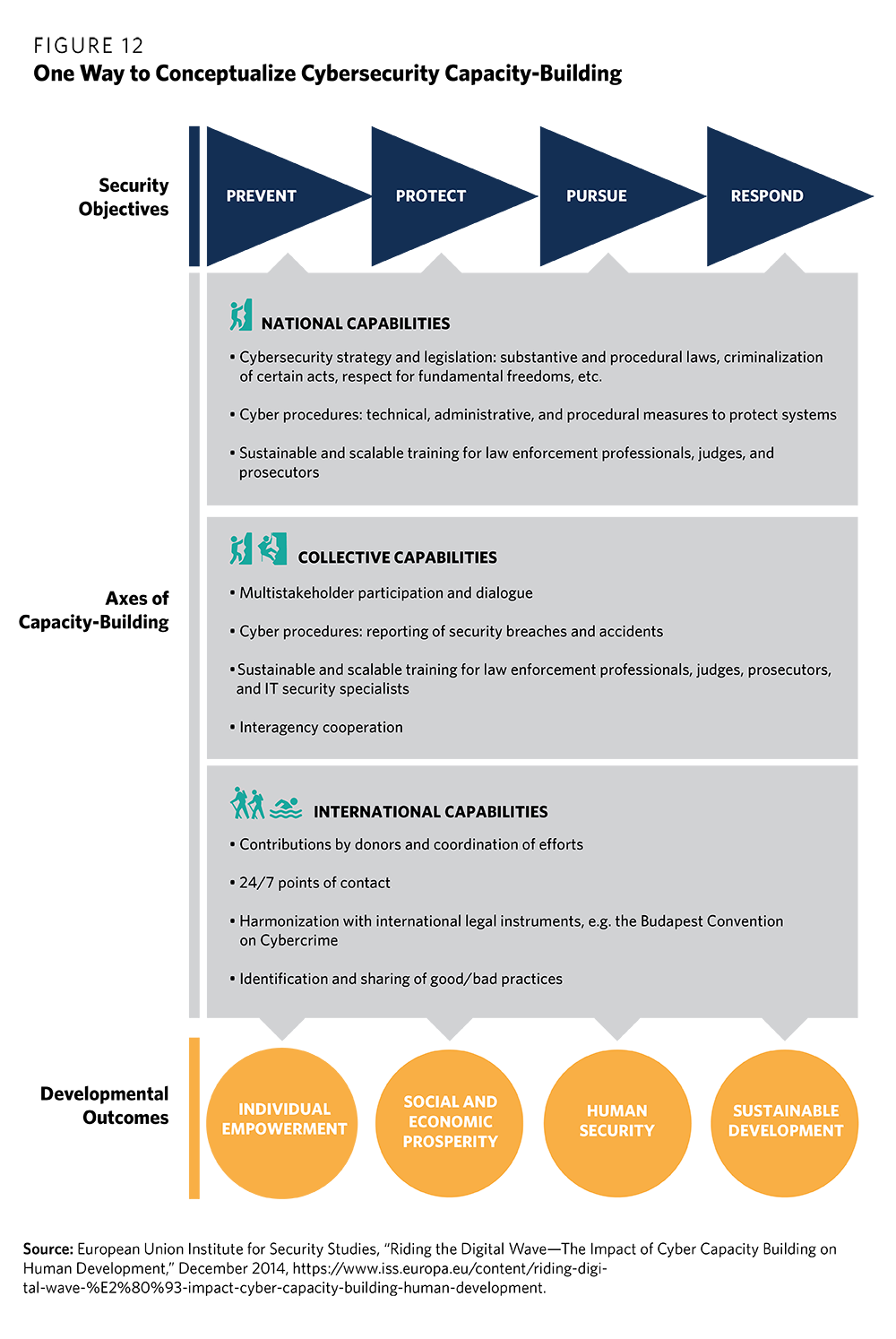 Organization for Security and Co-operation in Europe (OSCE):The OSCE is a security-focused organization comprised of fifty-seven member countries based in Europe, northern and central Asia, and North America. The OSCE wants to “operationalize pertinent UN guidance by [the GGE] on the regional level.”102 Like the ASEAN Regional Forum (ARF), the OSCE has been focused on cybersecurity capacity-building and confidence-building measures at a regional level, especially after the UN Group of Governmental Experts (UN GGE) failed to reach consensus in 2017.